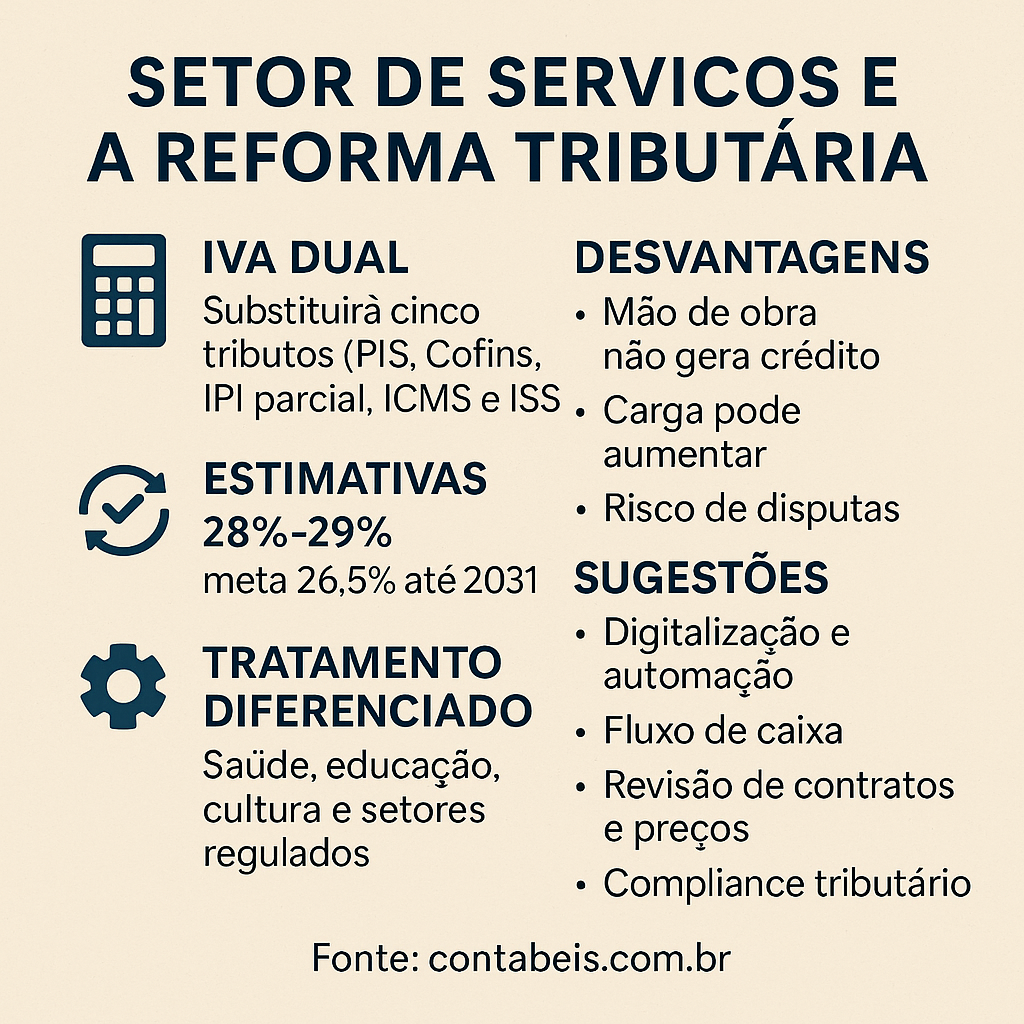 Setor de Serviços em Alerta: impactos da Reforma Tributária Entenda por que o setor que responde por grande parte do PIB pode sentir mais os efeitos do IVA dual (IBS + CBS) e como se preparar. Infográfico: principais pontos da Reforma Tributária para o setor de serviços. A Reforma Tributária prevê a substituição de cinco […]