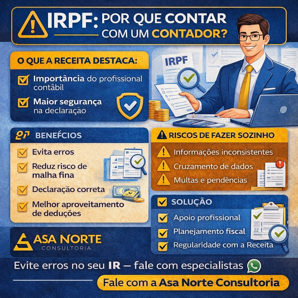 Receita Federal reforça: contador é essencial para entrega segura do IRPF Publicado originalmente em: Portal Contábeis Ler matéria completa A Receita Federal destacou o papel essencial dos contadores na entrega do Imposto de Renda Pessoa Física (IRPF), reforçando a importância do apoio profissional para garantir segurança e conformidade na declaração. Com o aumento do cruzamento […]