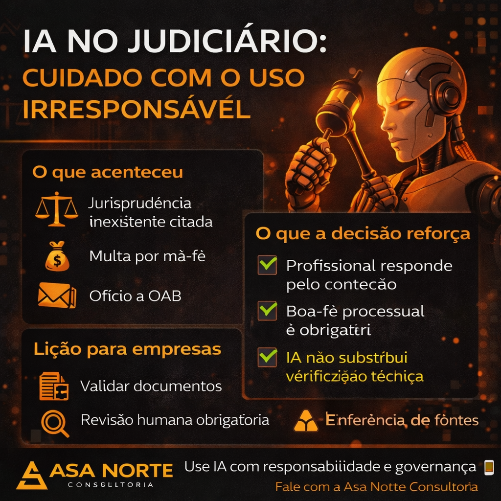 Uso de IA sem revisão gera multa por má-fé: decisão alerta profissionais e empresas Publicado originalmente em: ConJur Ler matéria completa Decisão recente apontou que o uso de jurisprudência inexistente gerada por inteligência artificial resultou em multa por litigância de má-fé e comunicação à OAB. O entendimento reforça que a utilização de ferramentas de IA […]