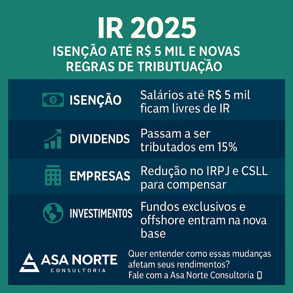 Nova isenção do IR até R$ 5 mil e tributação de dividendos: entenda o impacto nas empresas e investimentos Publicado originalmente em: Valor Investe (Globo) Ler matéria completa O novo pacote tributário apresentado pelo governo prevê isenção do Imposto de Renda para quem recebe até R$ 5 mil por mês e a tributação de lucros […]