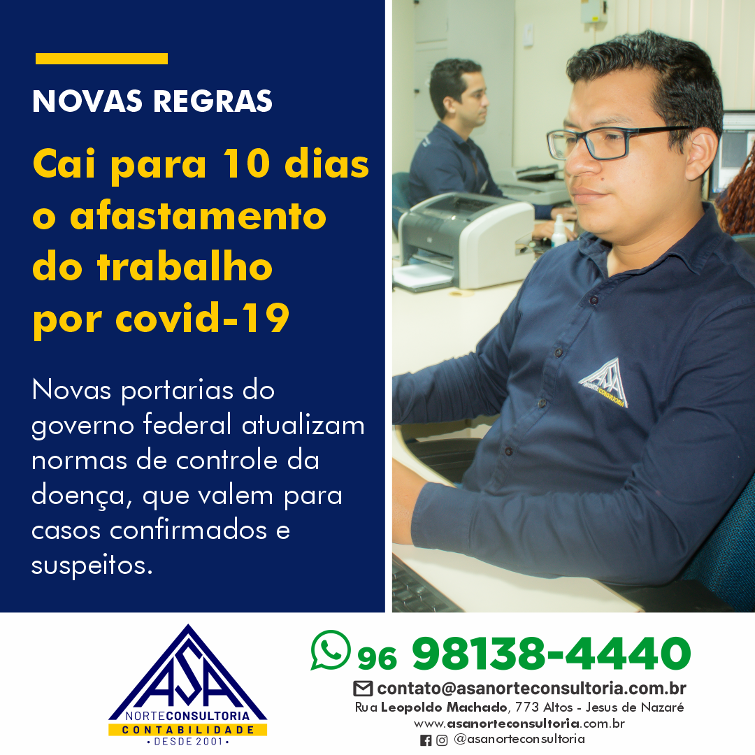 O governo federal atualizou as medidas de controle e prevenção à covid-19 no ambiente de trabalho. A principal alteração é a redução de 14 para dez dias no tempo de afastamento, podendo cair para sete nos casos sem febre e sintomas respiratórios. As regras valem tanto para casos confirmados como para os apenas suspeitos e […]