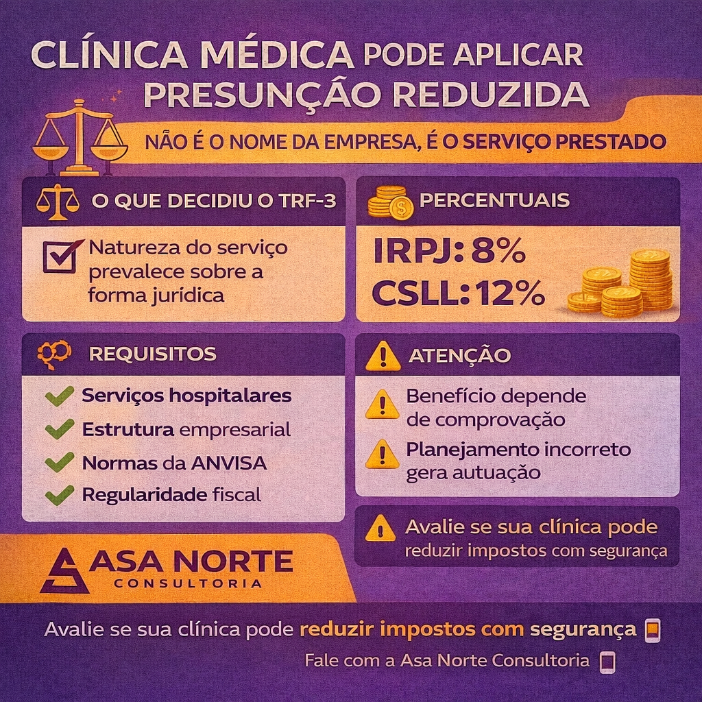 TRF-3 reconhece: clínica médica pode aplicar presunção reduzida no IRPJ e CSLL Fonte: TRF-3 – Justiça Federal Ler notícia completa A Justiça Federal reconheceu que clínicas médicas que prestam serviços de natureza hospitalar podem aplicar os percentuais reduzidos de presunção no IRPJ (8%) e na CSLL (12%), no regime do Lucro Presumido. A decisão reforça […]