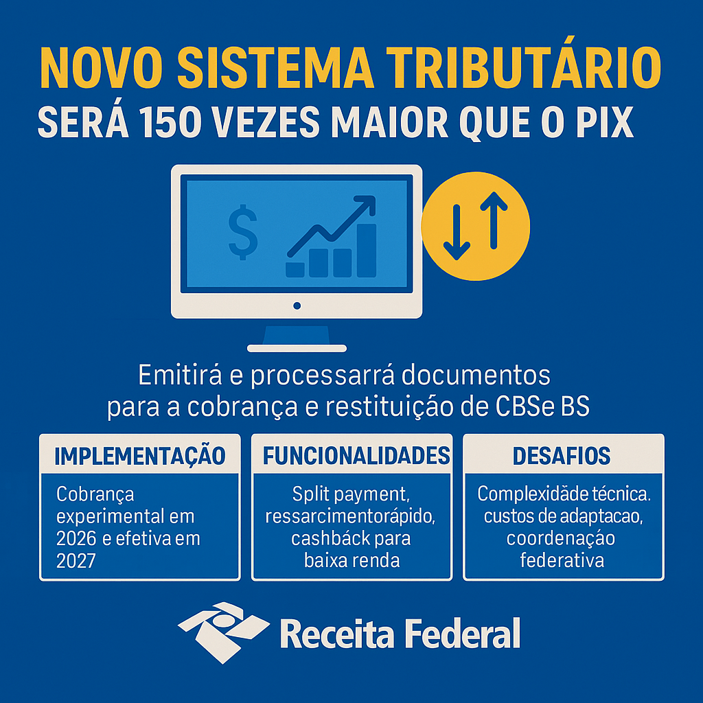 Sistema Tributário será 150x maior que o Pix: entenda o impacto da nova plataforma da Receita A Receita Federal está criando um sistema digital de arrecadação para os novos tributos de consumo (CBS e IBS), que deve ser até 150 vezes maior que o Pix em volume de dados processados. Infográfico: sistema tributário 150x maior […]